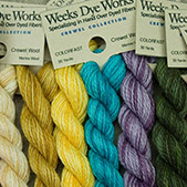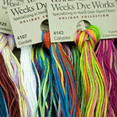 Our Weeks Dye Works fibers are used by stitchers and crafters of all kinds. We offer fibers that can be specific to particular types of needlework, but we encourage you to experiment and "play" with all of them. There are no limits as to how they can be used in stitched pieces ... or even other creative projects, such as scrapbook or card-making embellishments.